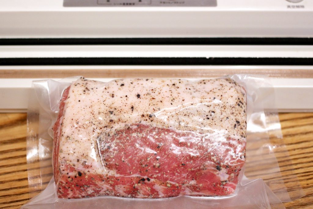 食材を耐熱ポリ袋に入れて湯煎する調理方法です。